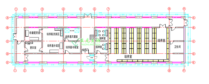 整體組培室設(shè)計方案由亞龍生物設(shè)計及全套設(shè)備供應(yīng),其中教研組培室按功能間區(qū)分有緩沖室、風(fēng)淋無菌室、培養(yǎng)基配制配藥室、滅菌室、接種緩沖室、接種室及培養(yǎng)室。擁有超凈工作臺4組、高壓滅菌鍋1臺、自動定量灌裝機1臺、洗瓶機1臺、實驗邊臺4組、接種滅菌器4臺、培養(yǎng)架108組,以及精密儀器及耗材,采用最新設(shè)備及最新組培技術(shù),大力發(fā)展馬鈴薯脫毒快繁,教研組培室年生產(chǎn)能力達(dá)到80萬株,開展實訓(xùn)畢業(yè)生5000余人。