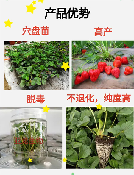 亞龍組培草莓種苗生產(chǎn)基地,占地200畝,2019年草莓種苗繁育投入生產(chǎn),年產(chǎn)能力可達(dá)300萬株,草莓種苗、草莓穴盤苗、草莓秋季生產(chǎn)苗已開始預(yù)訂啦,品種有章姬草莓、甜寶草莓、甜查理草莓等,品種陸續(xù)更新,歡迎新老客戶致電,優(yōu)惠多多!