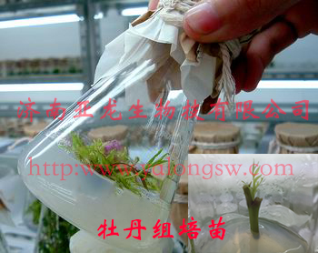 牡丹苗經(jīng)過植物組培技術(shù)進(jìn)行脫毒培育,針對牡丹常見的灰霉病、炭疽病、紅斑病都得到了改善。濟(jì)南亞龍生物科技有限公司通過組培技術(shù)對牡丹組培苗克隆成功,牡丹組培苗采用優(yōu)質(zhì)油用牡丹作為母本材料,將材料放入紗布袋中,用自來水沖洗1小時(shí),在無菌條件下,進(jìn)行消毒預(yù)處理,再用消毒液浸泡3-6min,取出用無菌水沖洗3-5次,用滅菌濾紙吸干材料表面水分,在體視解剖鏡下用手術(shù)刀等工具輕、準(zhǔn)、快速地剝?nèi)ビ兹~,將莖尖組織接入培養(yǎng)基中。在適宜的條件下,給予生長所需要的光照、溫度、濕度使牡丹的任何一個(gè)器官長成完整的植株。